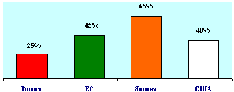При этом все более заметной становится роль российских банков в инвестиционной деятельности. По исследованиям Ассоциации российских банков (АРБ) объем кредитов, предоставленных российскими банками предприятиям, за последние пять лет вырос в 3 раза. При этом в кредитном портфеле российских банков заметно увеличилась доля долгосрочных кредитов, составляющая сейчас 40 % (в 2000 году эта доля составляла всего лишь 25 %). При этом почти в 2,5 раза (с 11 % до 25 % за 5 лет) выросло отношение кредитов банков к ВВП. Итак, результаты хоть и не сенсационные, но при этом налицо успешное и уверенное развитие, позволяющее надеяться на как минимум столь же успешное будущее.
