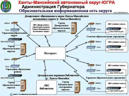 Проект «Образовательная информационная сеть Ханты-Мансийского автономного округа — Югры» занял второе место в номинации «Использование ИКТ в социальной сфере» конкурса «Лучший регион в сфере ИКТ». Он реализован Комитетом по информационным ресурсам администрации губернатора Ханты-Мансийского автономного округа — Югры1, в создании образовательной сети приняли участие: