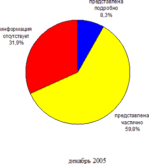 На 5,5% (апрель 2005 г — 9,5%) сайтов отсутствует информация об оргструктуре федерального органа исполнительной власти.