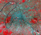 Снимок спутника QuickBird, разрешение около 0,6 м. Использование космических снимков в качестве заменителя обычной картографической основы или дополнения к ней позволило резко повысить информационную насыщенность географических продуктов. Площадные объекты например, леса утрачивают безликость, представая во всем своем многообразии. Становится возможным увидеть реальные границы водоемов, не стабильные во времени, а при наличии комплекта снимков, сделанных в разное время увидеть процесс их изменения «воочию». Спутниковые снимки позволяют оперативно отображать изменение характера городской застройки.