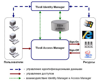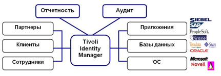 IBM Tivoli Identity Manager напрямую взаимодействует с пользователями и с системами двух внешних типов: источниками идентификационных сведений и механизмами управления доступом и предназначен для решения следующих задач: