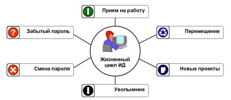 - Управления жизненным циклом ИД от найма сотрудника до его увольнения.