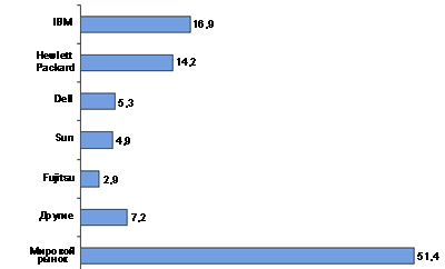 Доли крупнейших производителей на мировом рынке серверов, 2005