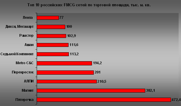 По данным РБК, в 2005 г. лидером по темпам роста стала сеть «Утконос» — 744 %. Grossmart продемонстрировал 400 %, «Монетка» — 152,9 %, «Копейка» — 84,4 %, «Дикси» и «Мегамарт» — 81,0 %. При этом российский ритейл растет отнюдь не только за счет линейного расширения — открытия новых магазинов и выхода в регионы. На рынке заметно активизировались процессы слияний и поглощений. Особенно тенденция характерна для обеих столиц, а также экономически развитых регионов. По оценкам РБК, общая сумма сделок M&A в российском ритейле за 2005 год превысила $270 млн.