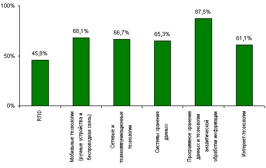 Западные тенденции постепенно приходят и в российскую торговлю. Как показал опрос ИТ-директоров крупных российских торговых предприятий, проведенный Intelligent Enterprise, мобильные, сетевые и телекоммуникационные технологии являются одними из самых приоритетных в плане повышения эффективности и конкурентоспособности бизнеса. В то же время технология автоматической идентификации с помощью RFID, которая заняла последнее место, несмотря на то, что ряд ИТ-директоров выставил по данной позиции максимально возможный приоритет (в их ответах отражалась специфика торговли конкретным товаром).