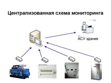 Перед рассмотрением возможных схем построения системы мониторинга необходимо определить, какие функции она должна выполнять. Это, прежде всего сбор и архивация данных о состоянии и параметрах контролируемых объектов (включен/выключен, исправен/неисправен, числовые данные о показателях качества электропитания на входе/выходе оборудования), обработка данных и формирование соответствующих сигналов, передача информации соответствующим потребителям, предоставление средств анализа текущего состояния и просмотра файлов истории данных, контроль линий связи и оборудования системы мониторинга (т.е. система мониторинга должна отслеживать собственную исправность с возможностью оповещения при потере связи с оборудованием).